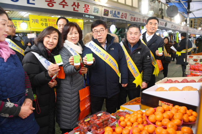 [경기 광주=로컬라이프] 송준형 기자 = 광주시는 22일 경안시장에서 설 명절을 앞두고 전통시장 활성화와 서민경제 안정을 위한 장보기행사와 물가안정 캠페인을 실시했다.