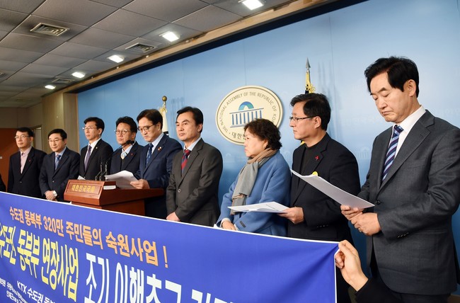 [의정부=로컬라이프] 송준형 기자 = KTX 수도권 동북부 연장운행 준비위원회(위원장 우원식)는 12월 19일 국회 정론관에서 기자회견을 통해 KTX 수도권 동북부 연장사업을 조기 이행 할 것을 촉구했다.