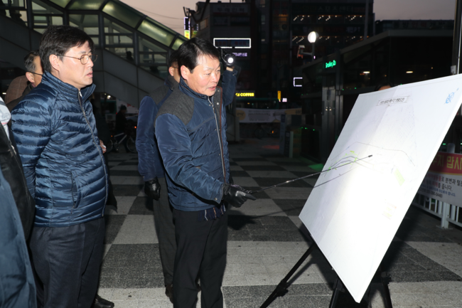 <사진/ 한대희 군포시장은 10일 국토부의 GTX-C노선 건설에 맞춰 시가 환승센터 건립을 추진할 금정역 일원에서 ‘현답(현장에서 답을 찾다) 행정’을 시행했다>