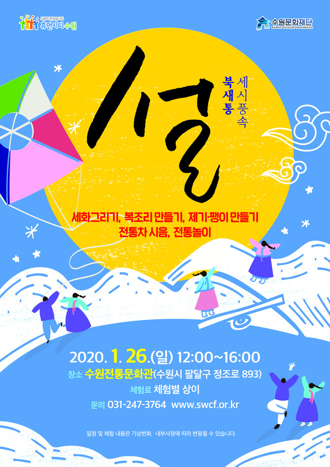 한편, 설 연휴 기간인 1월 24일부터 27일까지 수원전통문화관 잔디마당에서 대형 윷놀이, 연날리기 등 전통놀이를 즐길 수 있다.