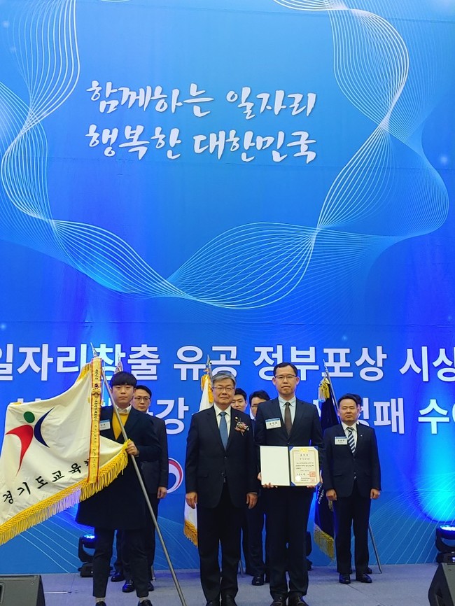 [경기=로컬라이프] 송준형 기자 = 경기도교육청(교육감 이재정)이 12월 23일 정부세종컨벤션센터에서 열린 ‘2019 일자리 창출 유공 정부포상 시상식’에서 대통령표창을 수상했다.