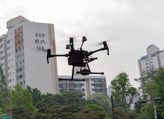 드론에 장착한 열화상 카메라로 성남지역 내 20년 이상 된 땅속 열 수송관 250㎞ 구간의 지표면 온도 차를 측정하고, 3~10도 차이가 나는 곳의 이상 징후를 감지해 점검하는 방식이다.