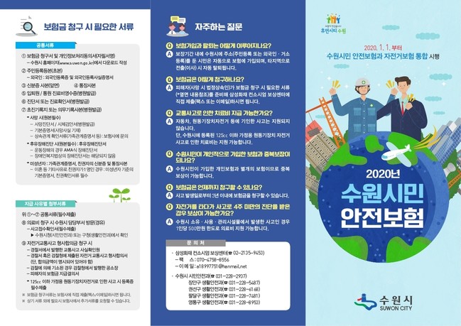 수원시 시민안전과 관계자는 “시민안전보험 가입으로 재난, 안전사고를 당한 시민들이 경제적인 도움을 받을 수 있을 것”이라며 ”보상 내용을 꼼꼼하게 확인하시고, 해당 사항이 있으면 꼭 보상금을 청구하시길 바란다”고 말했다.