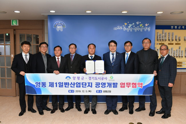 협약식에는 정동균 양평군수와 이헌욱 경기도시공사 사장을 비롯한 관계자 10여명이 참석하여 양평 일자리 창출의 전초지 및 동부권 미래성장의 발전 동력이 될 산업단지 조성에 적극 협력하기로 했다,