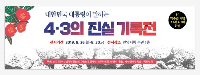[안양=로컬라이프] 송준형 기자 = 안양시는 (사)제주4.3범국민위원회·노무현재단제주위원회와 공동으로 오는 26일부터 30일까지 청사본관 1층 로비에서“대한민국 대통령이 말하는 4.3의 진실 기록전”을 개최한다고 밝혔다.