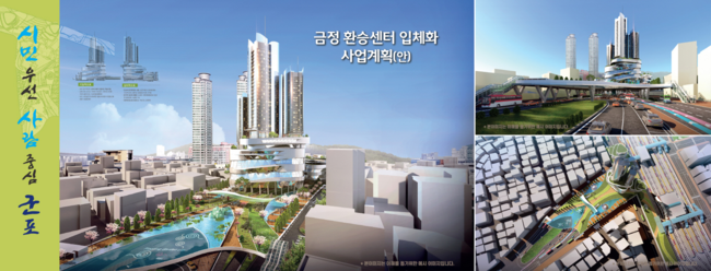 군포시의 인공대지 조성을 통한 이같은 입체화 개발방식은 수도권광역급행철도(GTX) C노선의 금정역 정거장이 지하화 건설이 아닌 기존의 지상 시설 이용으로 진행됨에 따라 시가 당초 역사를 중심으로 구상.계획한 환승센터 개발방침의 변경이 불가피해 마련된 대체 전략이다.