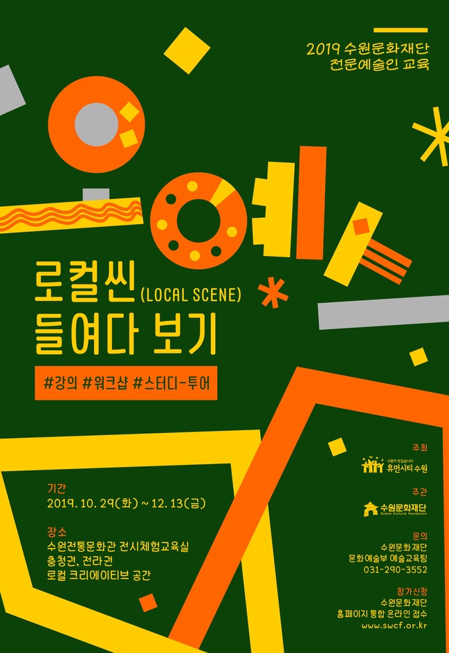 [수원=로컬라이프] 송준형 기자 = 수원문화재단(대표이사 박래헌)은 예술인들의 예술창작활동 지원과 사회적 역량 강화를 위한 전문예술인 교육사업을 진행한다. “오늘날 예술인들에게 꼭 필요한 스킬”의 약자인‘오예스’라는 사업명으로 추진하는 이번 교육 프로그램은 오는 29일부터 12월 13일까지 ‘로컬 씬(Local Scene) 들여다보기’라는 주제로 운영한다.