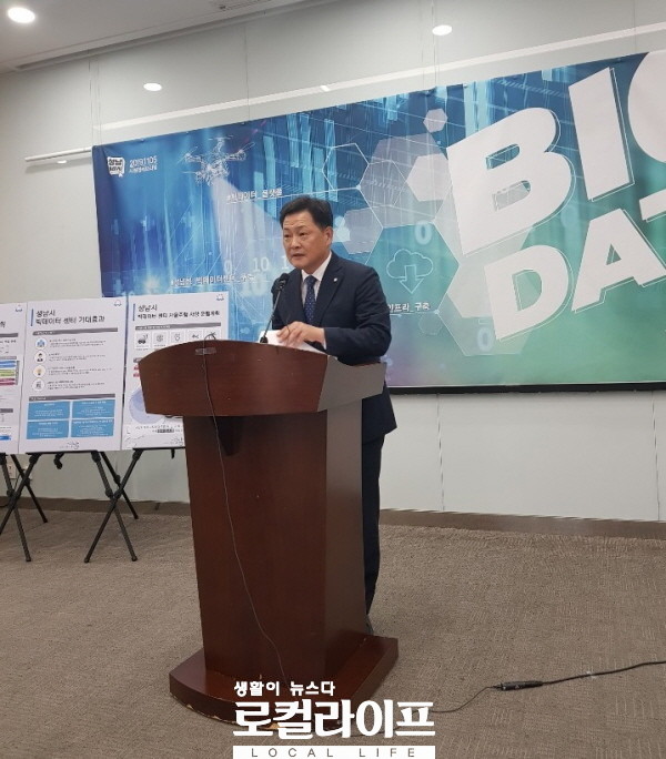| ▲ 임승민 성남시 행정기획조정실장이 기자브리핑을 통해 ‘성남시 빅데이터 센터’ 개소 및 활용 방안에 대해 설명했다. (영상촬영=임현상 기자) |