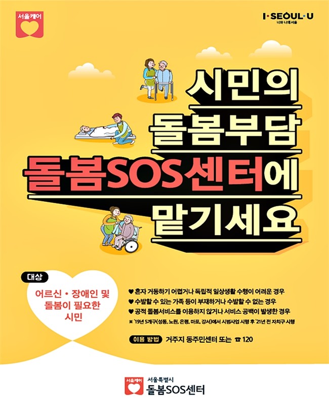 그동안 돌봄서비스를 받기 위해 요양시설, 복지관, 보건소 등 각 기관별로 찾아가거나 연락해 서비스를 신청했다면 앞으로는 ‘돌봄SOS센터’에서 필요한 서비스 지원·연계부터 사후관리까지 모두 이용할 수 있게 된다.