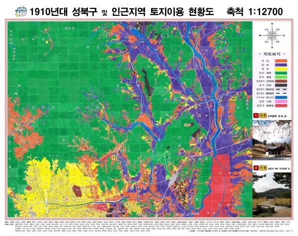 성북구는 개청 70주년 기념 사업의 일환으로 성북구와 인근 지역을 포함한 1910년대 행정구역 및 토지이용 현황지도를 자체 기술진으로 제작해 성북구의 옛날 사진들과 함께 전시하고 있다.