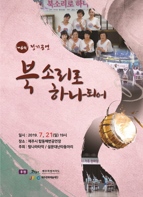 제주특별자치도 설문대여성문화센터 소속 난타동아리 ‘탐나라타악’는 오는 21일 오후 7시부터 탑동 해변공연장에서 ‘북소리 하나되어’라는 주제로 제6회 정기공연을 개최한다고 밝혔다.