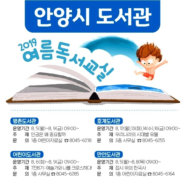 안양시립 평촌·호계·어린이·만안도서관은 여름방학을 맞은 초등학생을 대상으로 2019년 여름독서교실을 운영한다.