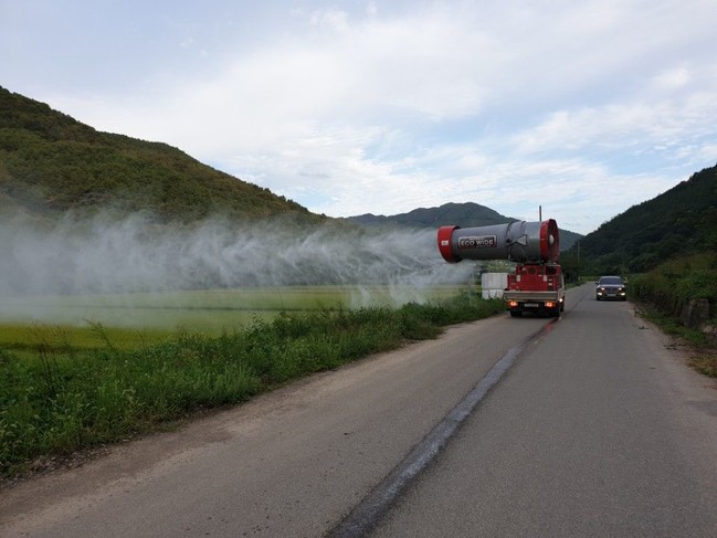 발생빈도와 개체수가 많은 친환경 벼 재배단지 180ha 방제를 위해 먹노린재 방제효과 있는 약제를 공급해 방제를 실시하고, 일반벼 재배단지 항공방제 시 먹노린재 방제 약제를 투입해 방제할 수 있도록 농협에 통보해 방제를 실시 중이다.