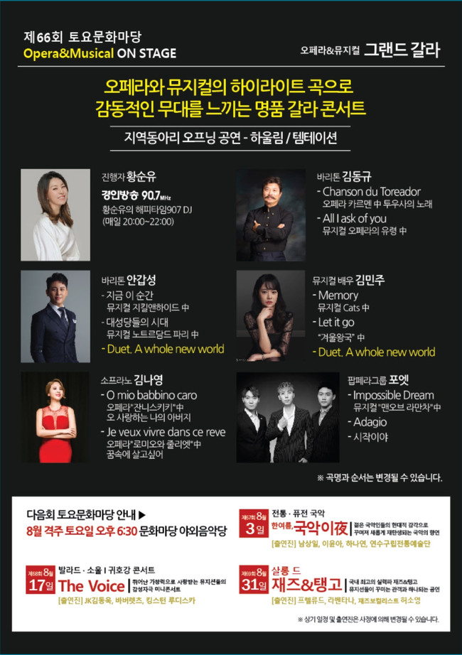 제66회 토요문화마당 ‘오페라&뮤지컬 그랜드 갈라’개최