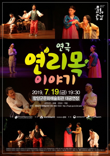 함양군은 오는 19일 오후 7시 30분 ‘2019년 문예회관과 함께하는‘방방곡곡 문화공감 사업’기획프로그램’공모사업의 두 번째 공연인 극단 문화모임 광대의 ‘연리목 이야기’연극 공연을 진행할 계획이다.