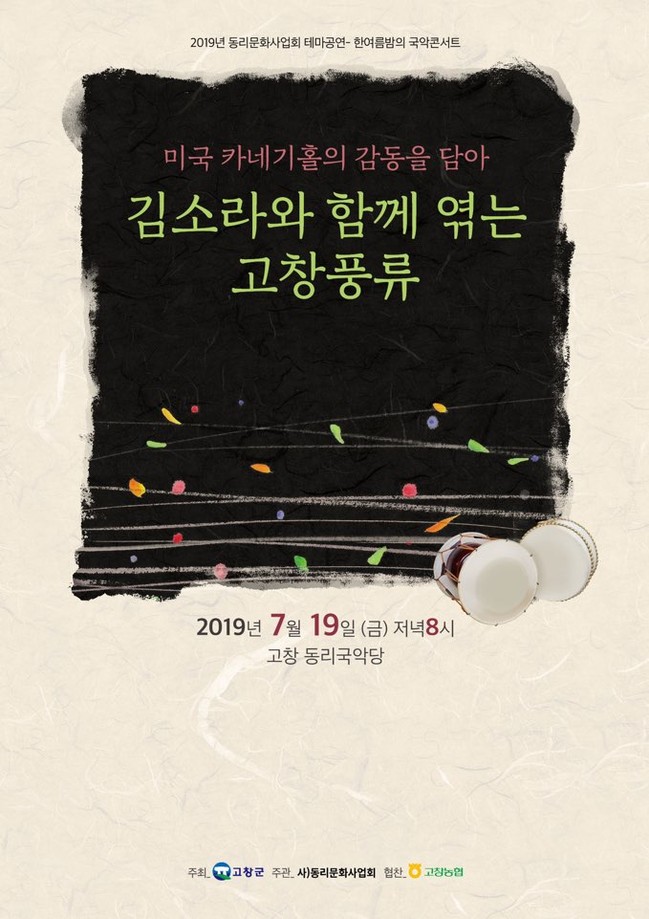 미국 카네기홀의 감동을 담다 19일 저녁 8시 / 고창 동리국악당 / 전석무료