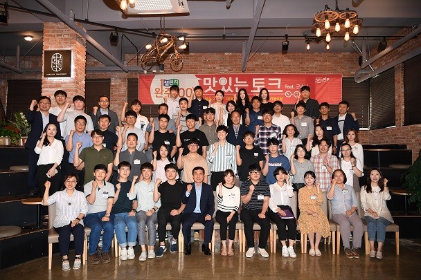 18일 박 군수는 청년키움식당에서 ‘맛있는 토크’를 주제로 직원들과 ‘완주 챌린지 100℃’ 활동영상을 시청하고 오찬을 함께했다.