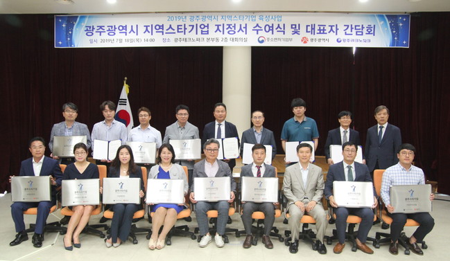 시는 18일 광주테크노파크에서 16개사에 지정서를 수여하고, 스타기업의 애로사항을 들었다.