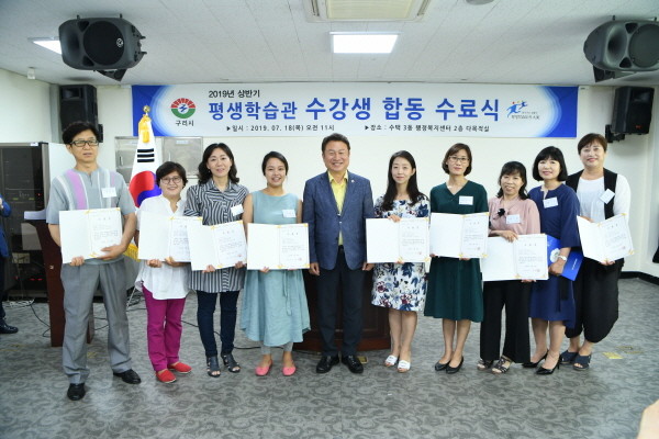 구리시는 지난 18일 행정복지센터 2층 다목적실에서 ‘2019년도 상반기 평생학습관 강좌 합동 수료식’을 가졌다.