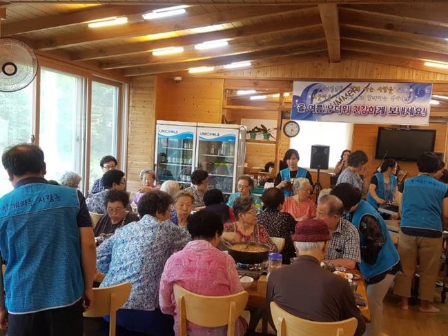 또한 이번 식사대접은 해물마당에서 준비했으며 식사대접 이외에도 제빵소 덤에서 빵, 다온에서 구운계란, 우리휀스에서 두유 등 푸짐한 간식 꾸러미를 준비해 홀로 사는 어르신들의 건강한 여름나기를 응원했다.
