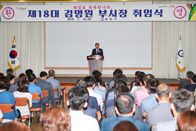 광양시는 지난 18일 시청 회의실에서 정현복 광양시장을 비롯한 200여 명의 공직자가 참석한 가운데 ‘김명원 부시장 취임식’을 가졌다고 밝혔다.