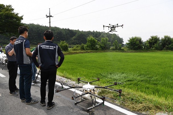 드론 방제사업은 논 농업에 우선 지원한다. 이와 과련해 시는 19일 안정면 여륵리 257번지 안웅기씨 소유농지에서 드론을 활용한 병충해 방제 시연을 펼쳤다.