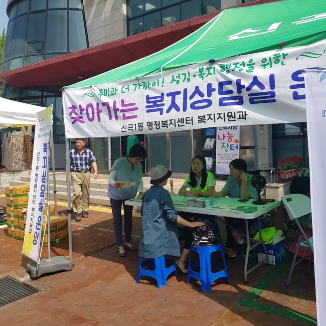 의정부시 신곡1동 복지지원과는 지난 19일 동 주민센터 주차장에서 직거래장터와 함께 ‘찾아가는 복지상담실’을 운영했다.