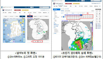 초단기 강수예측정보는 일상생활에 가장 영향을 많이 주는 강수 정보를 국민이 이해하기 쉽게 제공하기 위해 정부 혁신 사업의 일환으로 개발됐다.