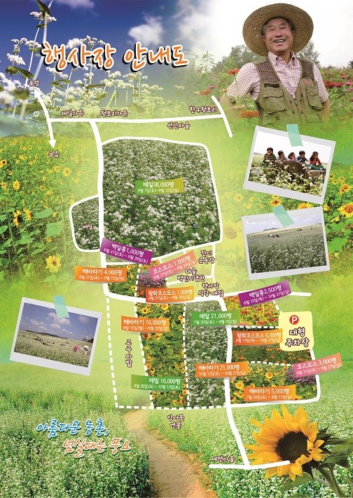 여름꽃은 단연 샛노란 해바라기다. 햇볕이 내리쬘수록 더욱 아름답게 피어나는 해바라기 꽃이 수 만평 꽃밭에 만개해 절경을 이루고 있다. 사람들은 노란색 물결을 이루는 해바라기 꽃밭에서 예쁜 추억을 만든다.