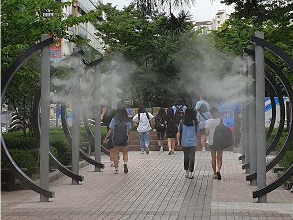 대야·신천행정복지센터가 올 여름 무더위를 대비해 대야동 625-2번지 걷고 싶은 거리에 쿨링포그를 가동했다.