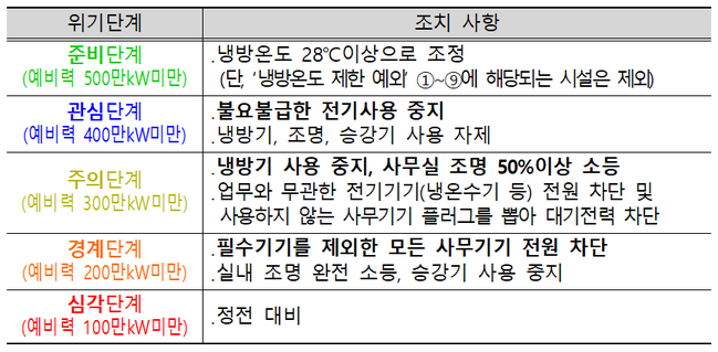 부산시 관계자는 “전력수급 위기상황이 발생하면 이는 시민 불편으로 이어지므로, 사전에 민간부문의 에너지 절약 참여 유도 등 기관별 특성에 맞는 에너지 절약 홍보를 적극 추진할 것”이라며, “위기상황 발생 시 관계기관 간 신속한 대응체계 확립 등으로 시민불편을 최소화하기 위해 최선을 다하겠다.”라고 말했다.