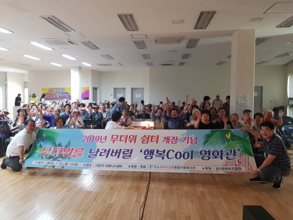 이번 무더위 영화관 개소식은 경기콘텐츠 진흥원의 지원을 받아 지역주민 200명에게 영화‘전국노래자랑’을 상영했고, 복지관에서 시원한 음료, 팝콘을 제공하였으며, 영화 상영 후 지역주민들에게 부채를 증정하며 종료됐다.