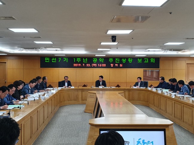 지난 23일 시청 창의실에서 개최된 공약추진상황 보고회
