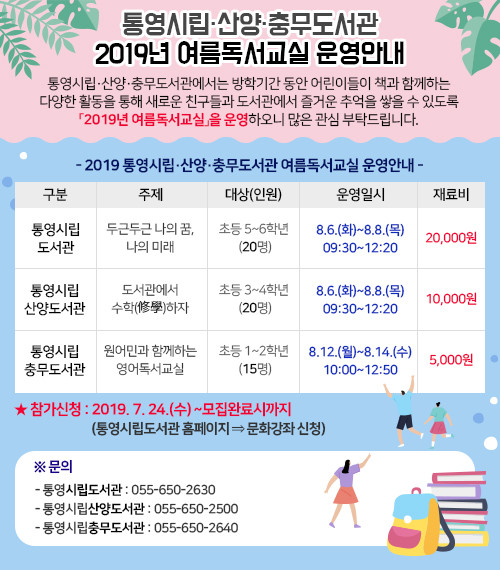 통영시립·산양·충무도서관 2019년 여름독서교실 운영 안내문