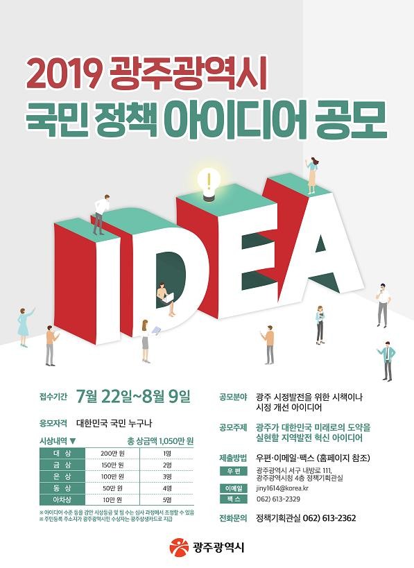 광주광역시는 민선7기 지난 1년의 성과를 바탕으로 대한민국 미래로의 도약을 실현할 정책 아이디어를 국민을 대상으로 공모한다.