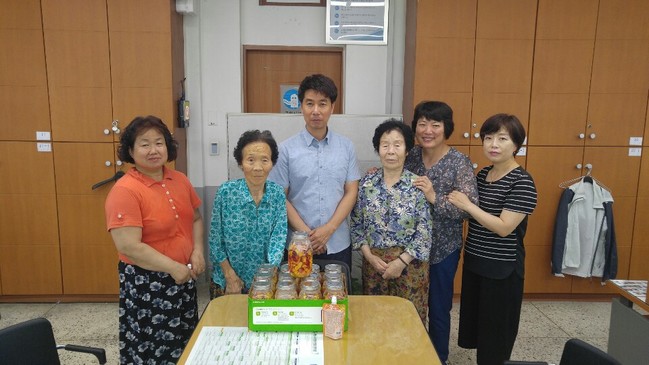 치매보듬마을에서 복숭아 청으로 행복을 나누어요