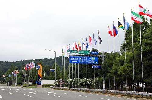 계룡IC 진입로에 지원국 37개국 국기게양, 국방도시 계룡 위상 제고