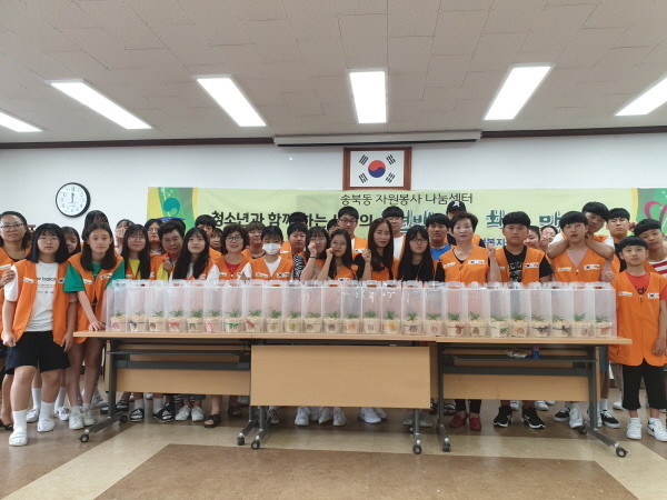 [경기=로컬라이프] 진용두 기자 =평택시 송북동 행정복지센터는 지난 27일 청소년과 함께하는 ‘사랑의 편백나무 화분 만들기’행사를 개최하고 정성스런 마음으로 난을 심어 관내 지역아동센터에 무료로 나눠주며 이웃사랑을 실천했다.