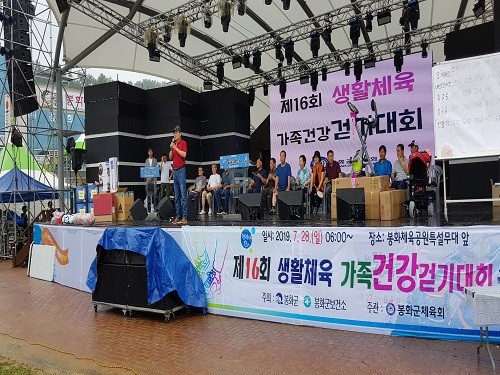 봉화군 체육회가 주관한 이번 걷기대회는 봉화를 찾아온 관광객과 지역주민이 함께 참가했고, 걷기 코스로는 체육공원에서 축제장-어린이물놀이장 가교를 건너 테니스장과 내성천소망다리를 돌아 체육공원까지 돌아오는 3.3km코스로 진행됐다.
