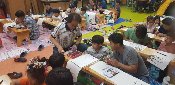 이날의 독서여름캠프는 수국만들기를 시작으로 ‘내가 먼저 윷놀이’와 ‘아빠와의 공감의 시간’, ‘매조도 그리기’, ‘영화 감상’, ‘그림책으로 소통하기’, ‘둘만의 사진’, ‘퍼즐게임’ 등 다양한 프로그램이 진행됐다.