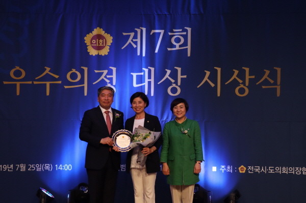 [경기=로컬라이프] 김보경 기자 =경기도의회 제2교육위원회 김미숙 의원이 지난 25일, 백범김구기념관에서 열린 제7회 우수의정대상 시상식에서 우수의정대상 수상의 영예를 안았다. 올해로 제7회째를 맞이한 전국시도의회의장협의회에서 주관하는 우수의정대상은 의정활동이 우수한 지방의원을 대상으로 수여하는 권위 있는 상이다.