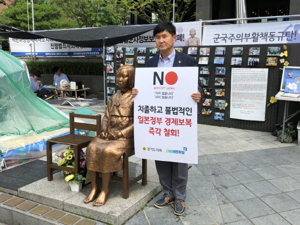 한편 경기도의회 더불어민주당 의원들의 ‘일본 경제보복 철회 촉구 릴레이 1인 시위“는 다음 달 23일까지 주말을 제외하고 매일 계속될 예정이다.