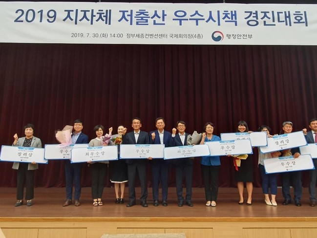 경상북도는 지난 30일 정부세종컨벤션센터에서 개최된 행정안전부‘2019년 지방자치단체 저출산 극복 우수시책 경진대회’에서 최우수상을 수상하여, 시상금으로 특별교부세 1억5천만원을 확보했다고 밝혔다.