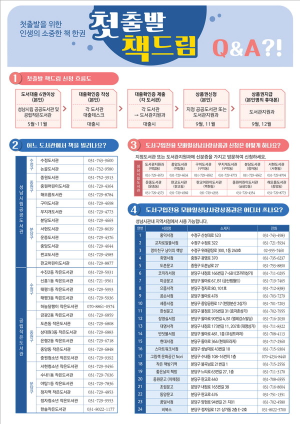 첫출발 책드림 사업은 ‘성남시도서관 운영 및 독서문화진흥 조례’가 개정되고 나서 지난 5월 1일부터 시행됐다.