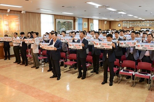 김석환 홍성군수는 지난 1일 오전 9시 군청 대강당에서 직원 200여 명이 참석한 가운데 일본의 경제침탈 규탄대회를 개최하고 부당한 수출규제 조치를 즉각 철회할 것을 요구했다.