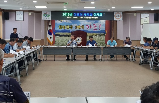 거창군 가조면 체육회는 지난 7월 31일 가조면사무소 2층 회의실에서 체육회 임원 50여 명이 참석한 가운데 이사회 회의를 가졌다.