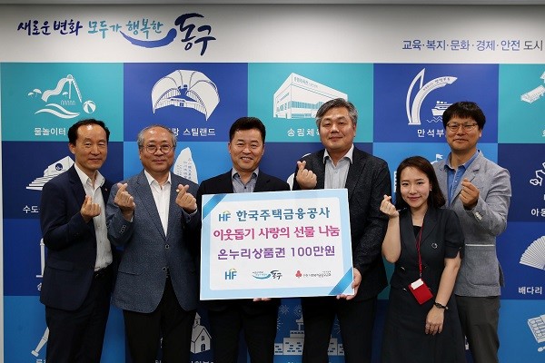 이날 전달식에서 한국주택금융공사는 작년에 이어 올해도 동구 관내 취약계층 생활안정에 조금이나마 보탬이 되길 바란다며 온누리 상품권 100만원을 기탁했다.