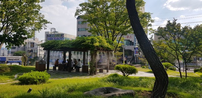 시는 스마트그늘막 외에도 시민의 쉼터에 쿨링포그를 설치했으며 폭염특보 시 일 5회 살수차를 운영하고 경로당과 마을회관 등 ‘무더위 쉼터’를 지정해 운영하고 있다.