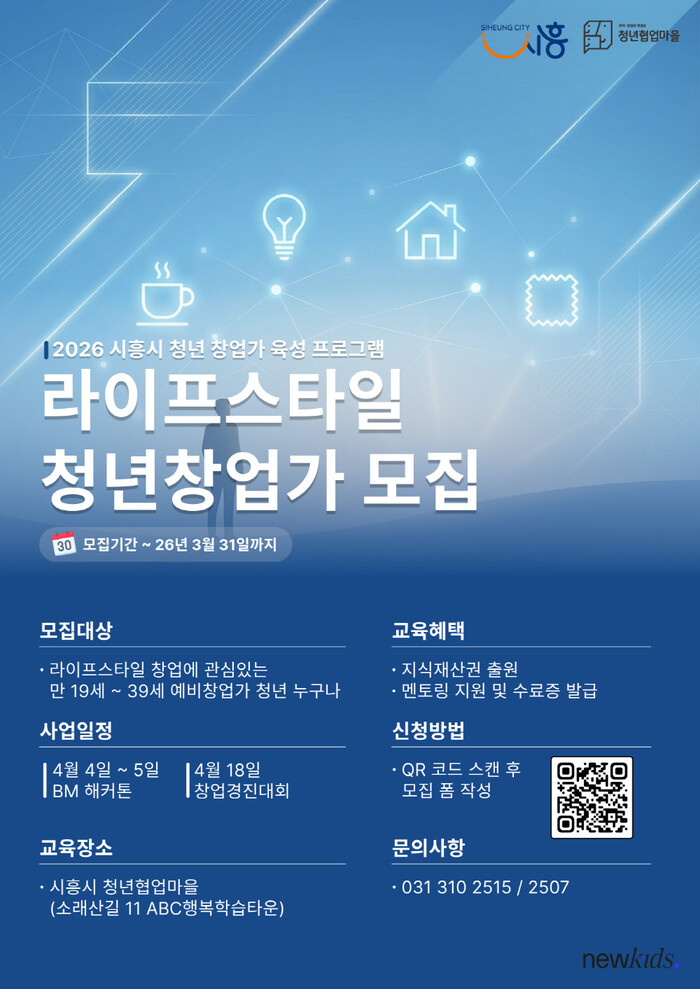 시흥시(시장 임병택)는 ‘2026 청년 창업가 육성 프로그램’의 일환으로 라이프스타일 분야 예비 청년창업가를 대상으로 실전형 창업 프로그램인 ‘창업 해커톤’과 ‘창업 경진대회’를 운영하고, 오는 3월 31일까지 참가자 30명을 모집한다.
