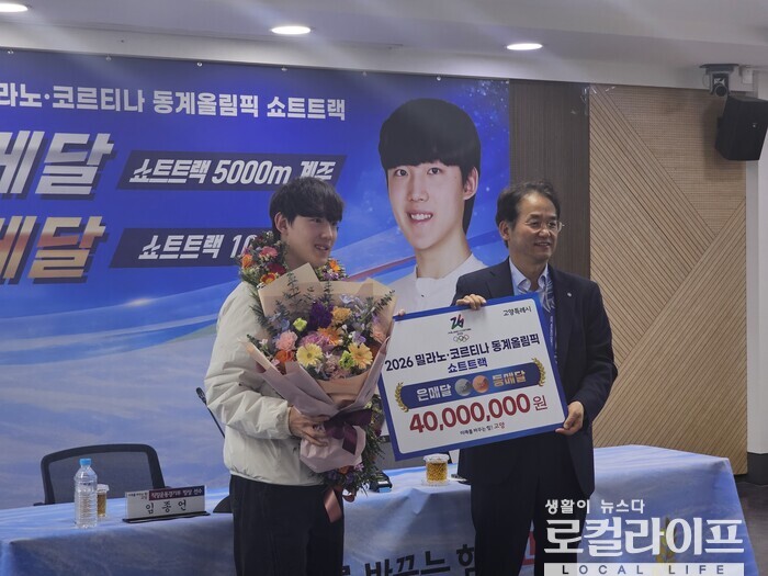 [고양=로컬라이프] 고양특례시는 지난 27일 오후, 2026 밀라노·코르티나담페초 동계올림픽에서 은메달과 동메달을 획득한 쇼트트랙 국가대표 임종언 선수의 환영식 기자회견을 가졌다.